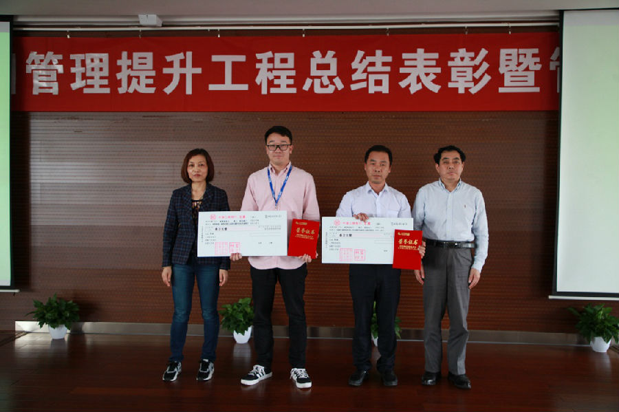 会上,云峰新材、华源颜料两个管理提升工作领导小组受到集团公司表彰奖励,《电磁铁代替人工清桶——降本提质、强化安全》等26个成果项目分获管理提升第三段管理提升优秀成果一、二、三等奖和鼓励奖。集团公司领导夏士林、吴梦根、王菊平、朱根法、王锋、鲍希楠等分别为优秀团队、优秀成果奖获奖项目组颁奖。